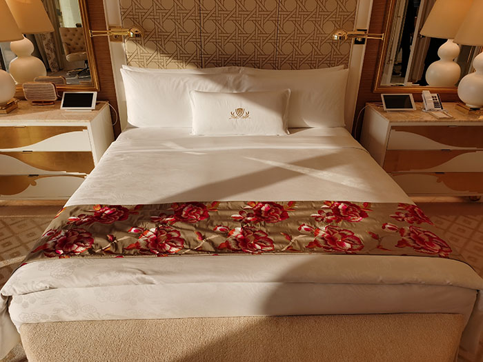 深圳客房枕頭上的標(biāo)識(shí)設(shè)計(jì)與分享。精至的印刷品與絲印效果,體現(xiàn)高端大氣的品質(zhì)。