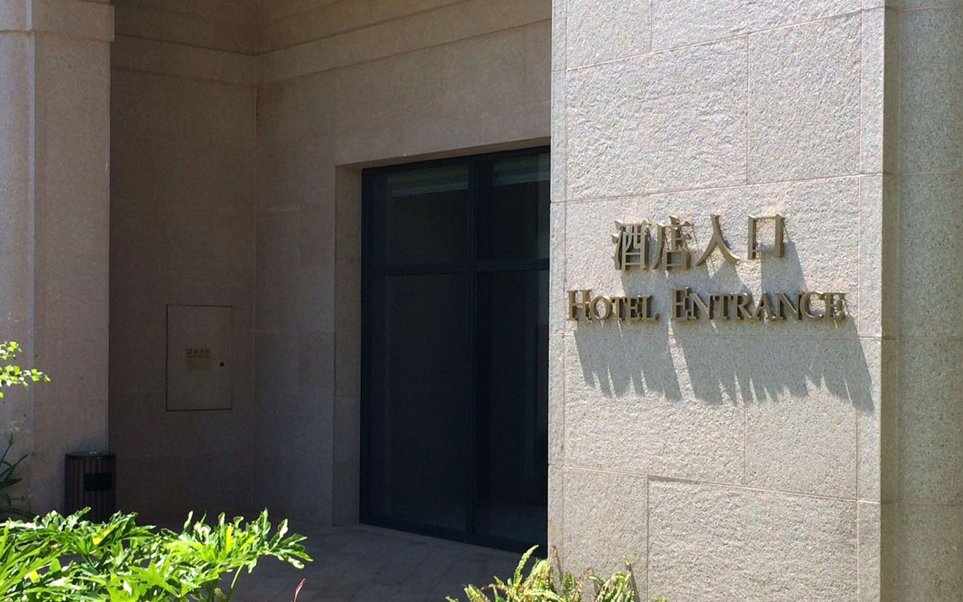 海口香格里拉大酒店位于海口市度假中心,海邊的天然美景、海岸線的風光、椰風的靜謐之處、這是海口度假天堂,海口香格里拉大酒店標識設計以海洋、海口椰樹風光為設計創意,室外以古銅打造陽光下的度假方案導視設計,室內以沙石雕花邊工藝制作,結合金屬質感的點綴,形成鮮明的品質感。