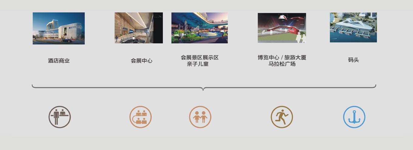 海峽旅游服務(wù)中心為一個(gè)大型城市綜合體,海峽旅游大廈(商場(chǎng)寫字樓)、旅游博覽中心(商場(chǎng)+SOHO)、旅游會(huì)展中心(商場(chǎng)+展廳)、廈金客運(yùn)碼頭三期(交通樞紐)、佰翔五通酒店(五星級(jí)酒店+商場(chǎng))。