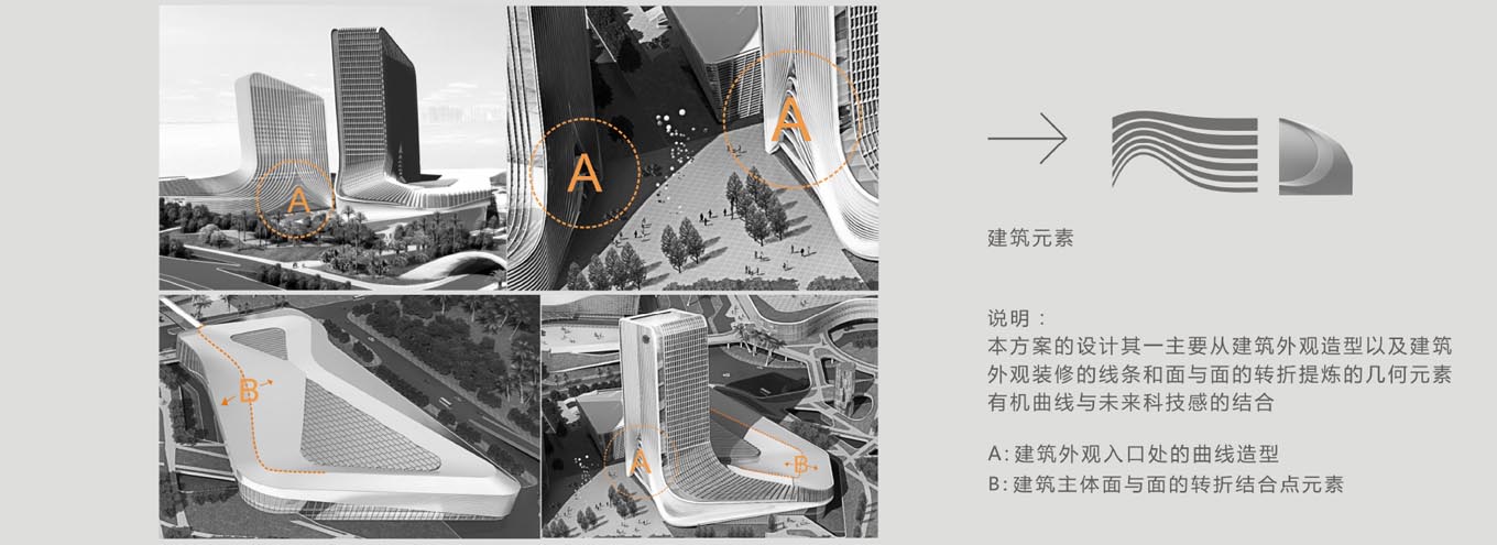 上述五個(gè)子地塊項(xiàng)目在空間上通過(guò)二層架空平臺(tái)連成一個(gè)整體,營(yíng)造人、車分流動(dòng)線并創(chuàng)造大型戶外公共休閑空間!