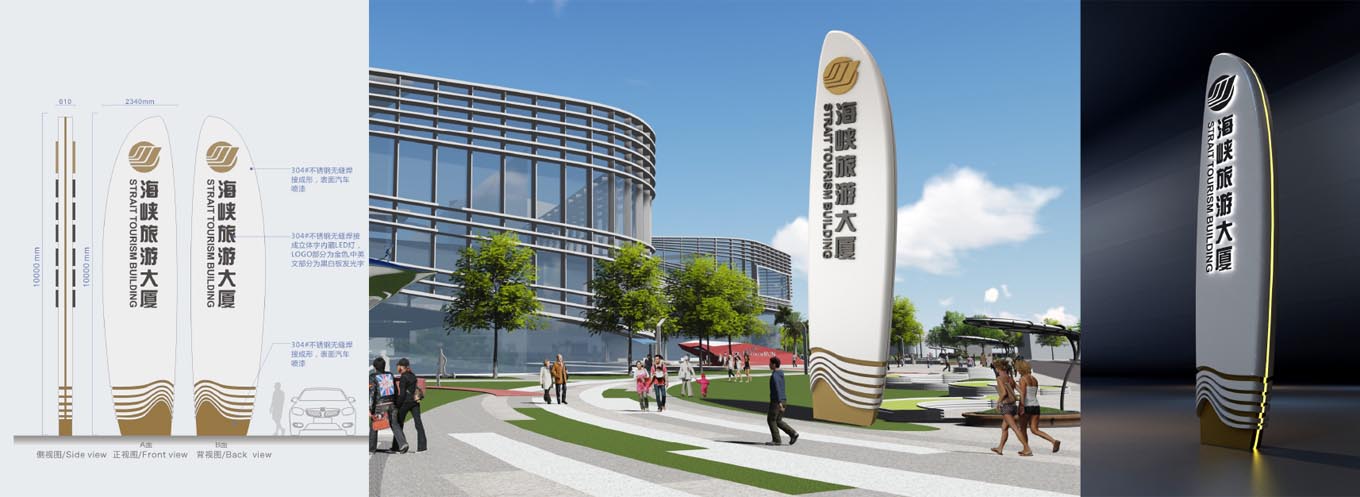 海峽旅游服務(wù)中心為一個(gè)大型城市綜合體,總用地面積達(dá) 22萬(wàn)㎡,總規(guī)劃建筑面積達(dá)46.5萬(wàn)㎡,其中地上373000㎡;地下:92000㎡;總?cè)莘e率1.6,總建筑密度50.33%,綜合綠地率18.69%(架空層綠化折算后),共規(guī)分五個(gè)子地塊,如下:海峽旅游大廈(商場(chǎng)寫字樓)、旅游博覽中心(商場(chǎng)+SOHO)、旅游會(huì)展中心(商場(chǎng)+展廳)、廈金客運(yùn)碼頭三期(交通樞紐)、佰翔五通酒店(五星級(jí)酒店+商場(chǎng))。由人和時(shí)代集團(tuán)整體規(guī)劃海峽旅游服務(wù)中心商業(yè)綜合體標(biāo)識(shí)設(shè)計(jì)制作服務(wù)。